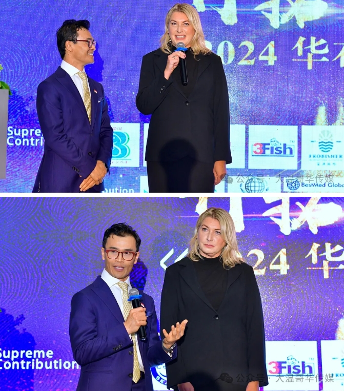 晚宴上半场,是驻温哥华各国领事上台颁发华布斯[华信奖]的环节。华布斯华信奖评委会主席、凤凰卫视加拿大台长祖克勤先生登台,向观众解释了“华信奖”的评选标准和过程。