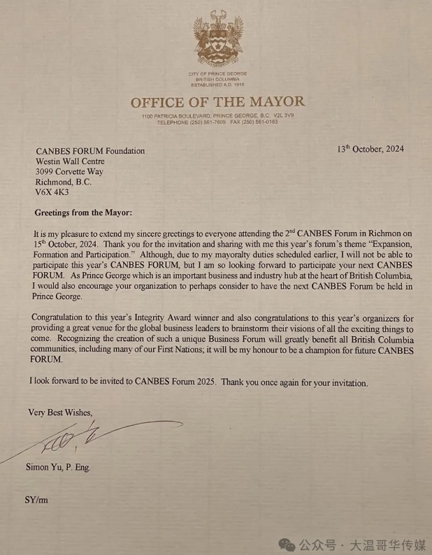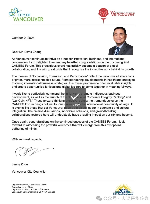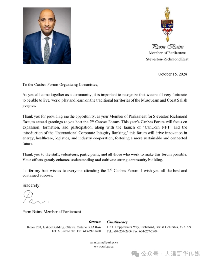 2024年10月15日,由华布斯论坛[Canbes Forum]主办的第二届华布斯论坛在加拿大温哥华成功举办,与会各界嘉宾近200位,下午近四个小时的论坛时间嘉宾一直认真倾听观看,气氛热烈祥和。