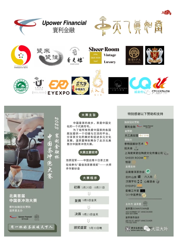 大赛主题“茶韵千年”旨在传承和弘扬中华千年茶文化,促进茶文化的创新与发展,得到了加拿大三级政府的祝贺和大力支持。主办方除邀请了中国茶企代表外,还邀请了当地各族裔的茶企参与,这些茶企来自加拿大,英国,印度,伊朗和日本,为大赛提供了丰富的茶叶资源,这些茶企也会在9月30日有精彩的演出。